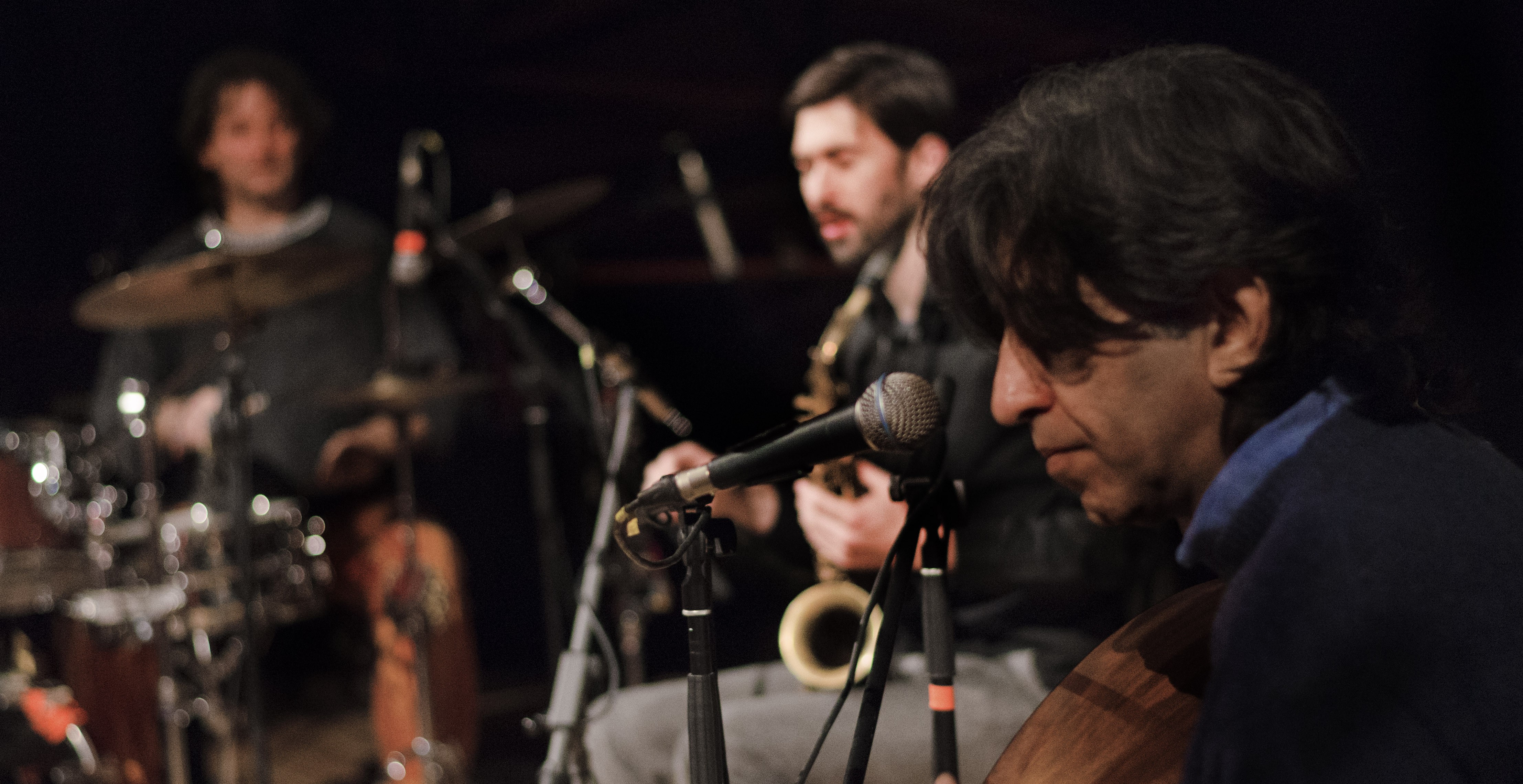 After many years of strictly solo performance Ziad has put together a new group, a trio of close friends yet very diverse musicians to continue with him. James Wylie is a wonderfully nuanced saxophonist from New Zealand who has made the move to Greece and quickly becoming an important figure on the scene. He is able to use the sax to subtly shadow the lines of Ziad and provide some beautiful textual counterpoint. Kostas Anastasiadis is in a funny way the musical antipode of Ziad. He fills the space with complex fills and shifts quickly and often between grooves on the set and the tabla. But the tension that arises from the meeting of these vastly different takes on the filling of space certainly sparks.