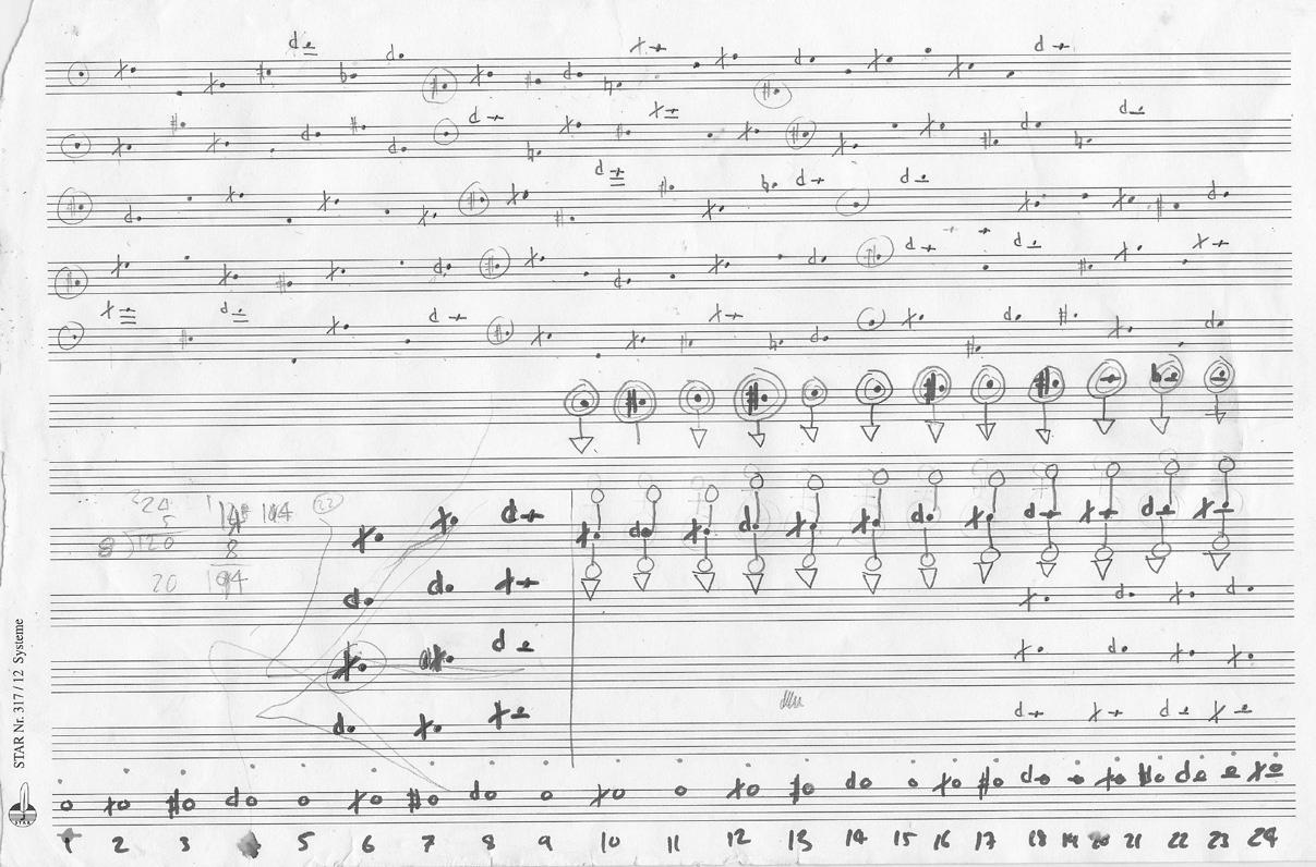 “Mute Density” uses some experimental notation forms which I first experienced playing some of the early scores of Morton Feldman. The results of this can be heard in the movement “Cassiopeian Dancehall”. Other movements use overtone tuning of the first 44 overtones with their respective cent deviations from the tempered scale. In the last few years I had drifted away from using quarter-tones and been more involved with natural overtone tunings. This was my first attempt to use some of these in a larger Jazz setting.